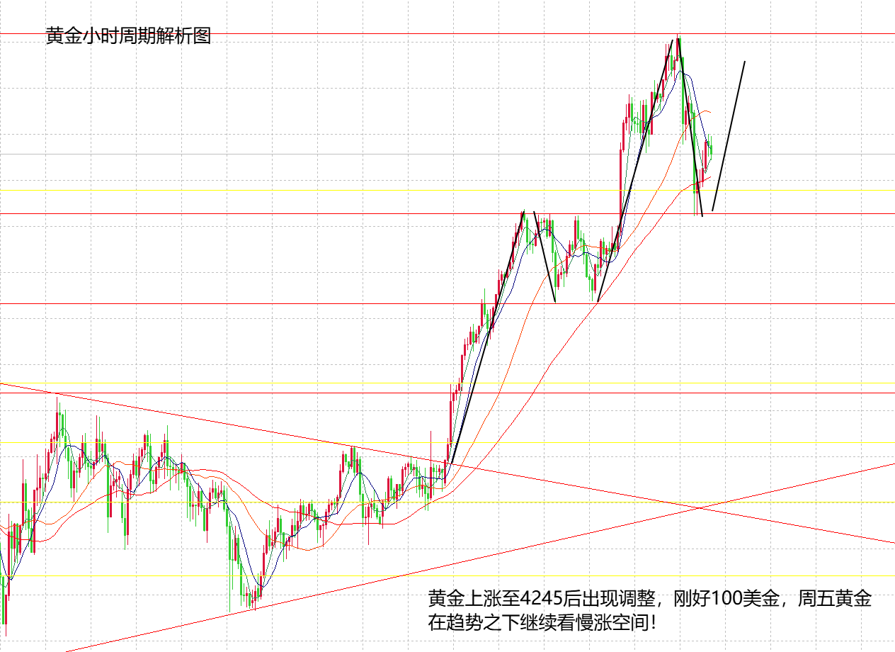 这波黄金上涨从3900起步,到周四最高4245,根基完成了山海对这波黄金看涨的预期,中长线美金,不外山海也强调过,这个周期看涨两头4250也有必然的,所以,周四亚欧盘正在开盘慢涨后就间接到了接近4250高点,正在相对走势中,美盘又刚好正在4245起头下跌,上下走出100美金力度,最低正在4145,现正在回首来看,其实这种走势比力合适市场的运转纪律。那么,颠末周四的下跌,周五黄金大要率也就是一个震动上行的走势,正在多头趋向不变的环境下,继续看上行空间即可,不外不要过度看涨。从手艺面来看,其实日线的上涨空间并没有走完,这波至多看到4300才可能竣事,而现实正在4245起头下跌,那么卑沉市场,正在日线初次收阴后就不要过度看上涨空间,H4周期就纷歧样,颠末回落调整,但没有破位布林中轨支持点,所以仍是绝对的强势,今天正在中轨之上看涨的线不破就以短线本周方针点。小周期的话,今天关心环节支持做多即可,早盘回落至4170后上涨,日内激进的话就以此支持做多,若是不测继续下行,就以4150支持做多,耐心期待周五的上涨空间,当然,方才讲过,周五看震动慢涨走势,上涨后不管是4250仍是4300均可按照现实能否破位考虑做本周的回落空间。
